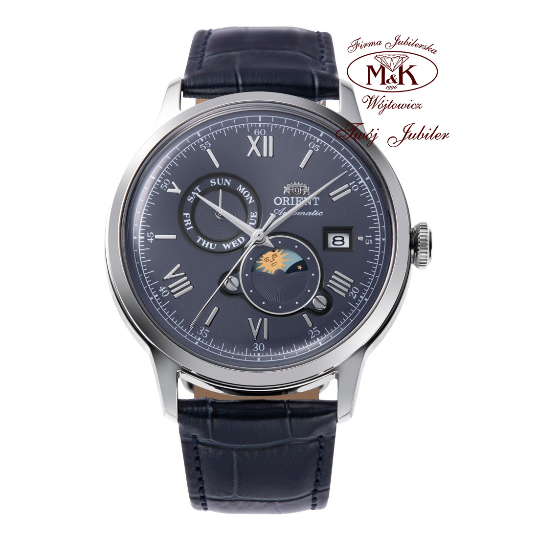 Zegarek Orient RA-AK0806L30B to klasyczny model. Jego kopertę wykonano z wysokiej jakości stali szlachetnej. Za działanie tego czasomierza odpowiada mechanizm automatyczny. Wyposażono go w datownik wskazujący aktualny dzień miesiąca, który umieszczono na godzinie trzeciej oraz wskaźnik dnia i nocy, zamknięte pod sferycznym szkiełkiem.